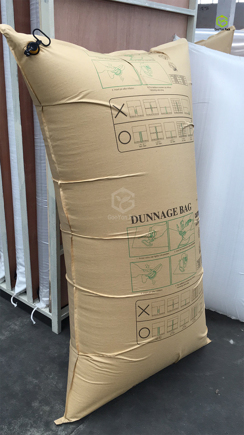GoodY paper dunnage air bag is comprised of outer sheld and inner bag. the valve can choose the small(9mm) or big(3cm) one.